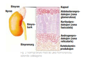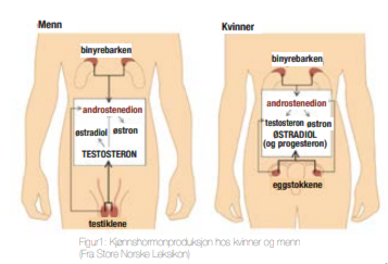 En normal seksualfunksjon hos menn og kvinner er avhengig av kjønnshormoner. De viktigste kvinnelige kjønnshormonene er østrogener og progesteron, mens det viktigste mannlige kjønnshormonet er testosteron. Både kvinnelige og mannlige kjønnshormoner produseres hos begge kjønn, hovedsakelig i eggstokker, testikler og binyrer. De hormonproduserende cellene i disse organene stammer fra samme utgangspunkt i fosterlivet, og har derfor potensiale til å danne de samme hormonene, om enn i ulike konsentrasjoner Ved addisons sykdom (AD) har man en autoimmun ødeleggelse av binyrebarkens hormonproduserende celler (Fig. 2).