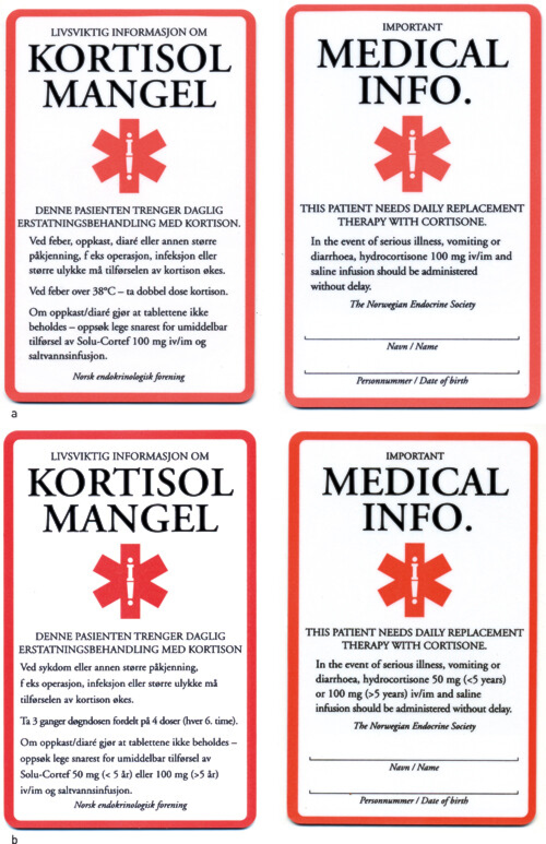 Kortene deles ut til pasienter med kjent binyrebarksvikt, både primær og sekundær (hypofysesvikt). Hvis din lege ikke har kortet, kan det rekvireres fra følgende personer: